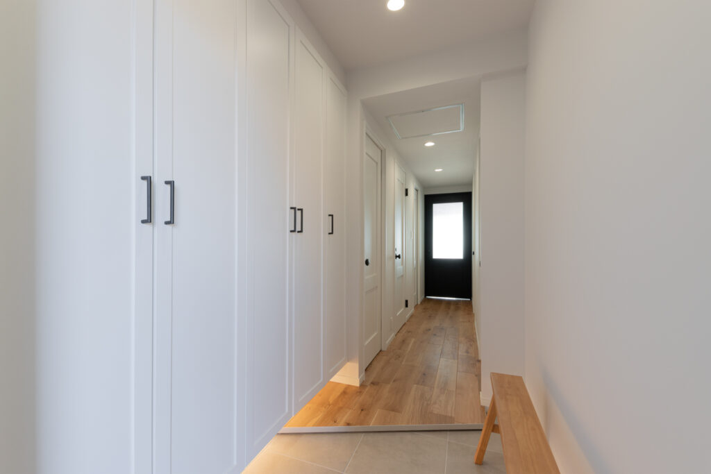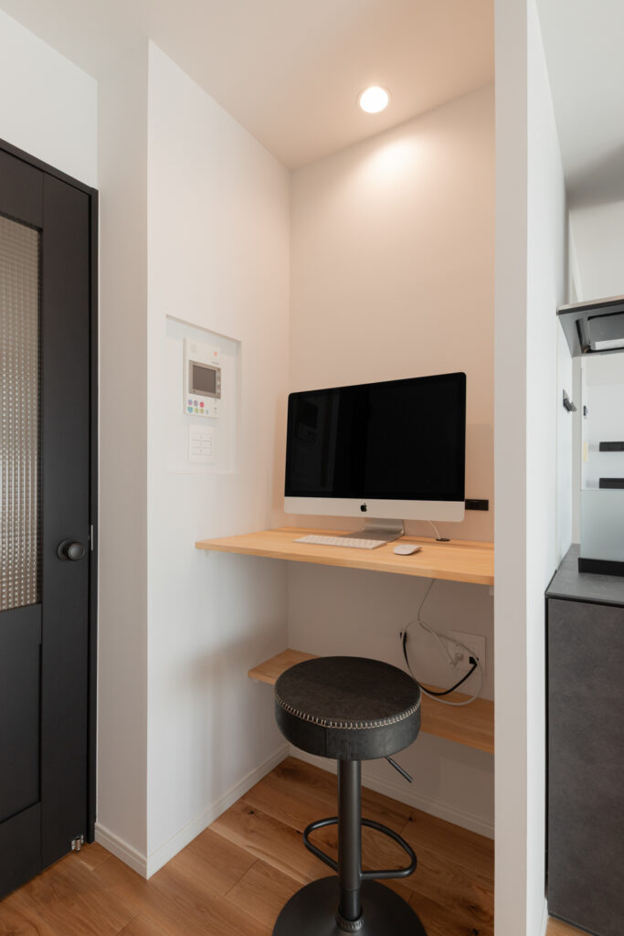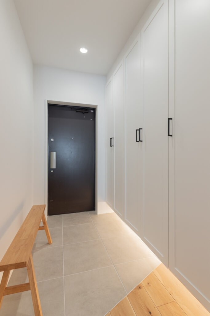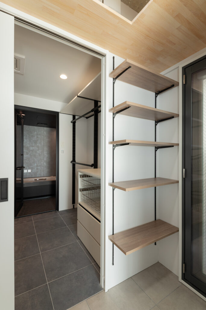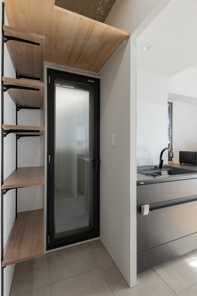 パントリーや廊下収納には、パナソニックの「しっくいホワイト」の建具を採用。圧迫感を抑えつつ、空間を明るく清潔に保ちます。回遊性のある間取りによって、家事も愛猫との追いかけっこも楽しめる住まいになりました。